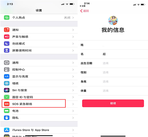 方式:在“设置”中,点击“SOS紧急联络”,之后会跳转到一个页面填写你的相关信息和联系人的电话号码。