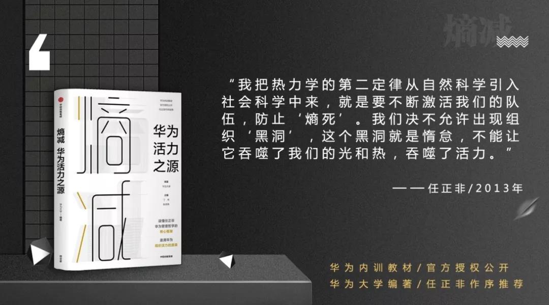 熵原本是热力学第二定律的概念,却被任正非用于研究企业的发展之道,任正非是较早把熵的概念引到企业管理中并系统阐述的企业家。熵的概念是贯穿任正非华为管理思想的精华。