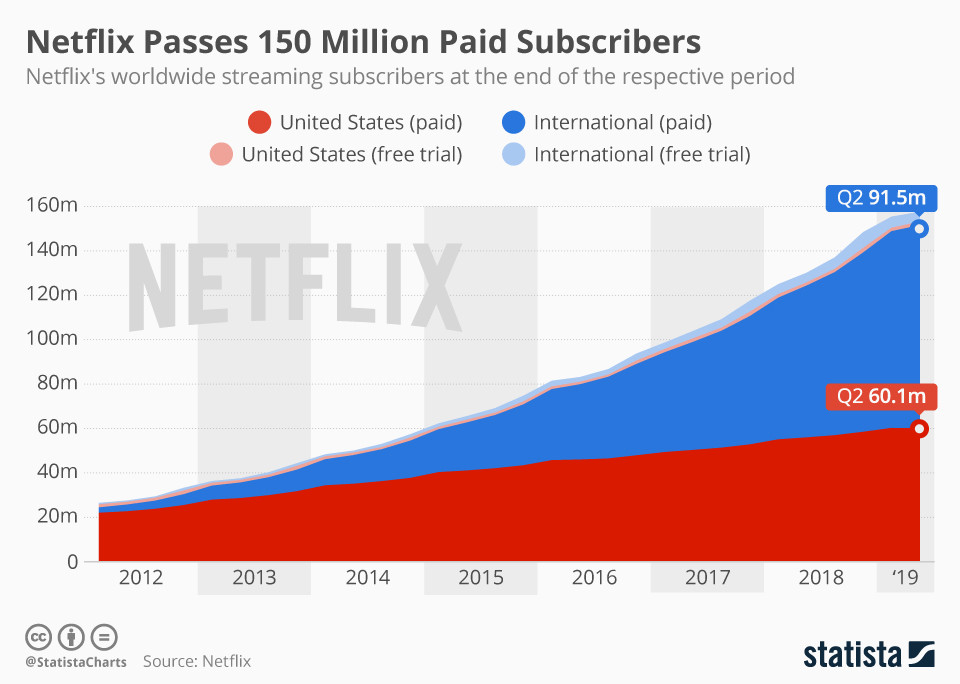 Netflix会员订阅量不断飙升,来源:Netflix Inc.