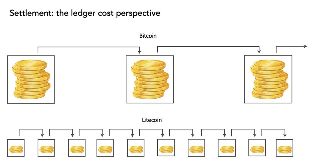 但是,我敢说大多数人并不会使用 BitConfs,或尝试将对各区块链需要的交易结算成本进行索引。恰恰相反,**「民科」们认为结算是交易确认数量的线性函数**。更令人遗憾的是,这其实是一个非常普遍的观点。即使是莱特币基金会网站也隐晦的表达这个观点: