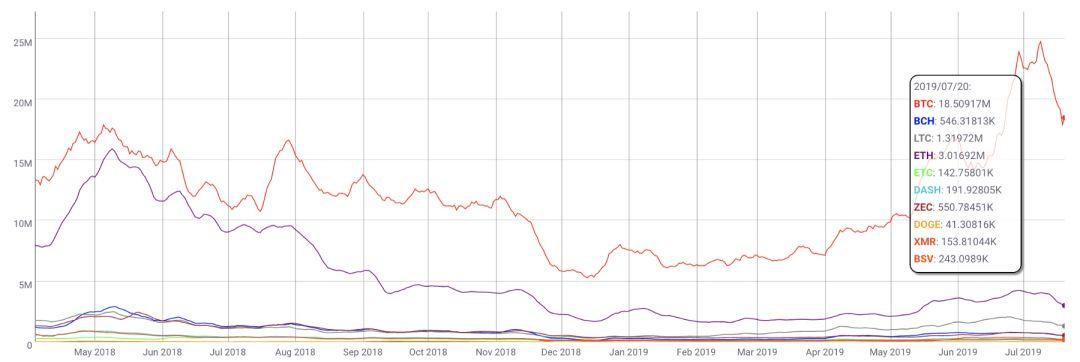 统计截至 2019/07/15,数据:Coinmetrics.io