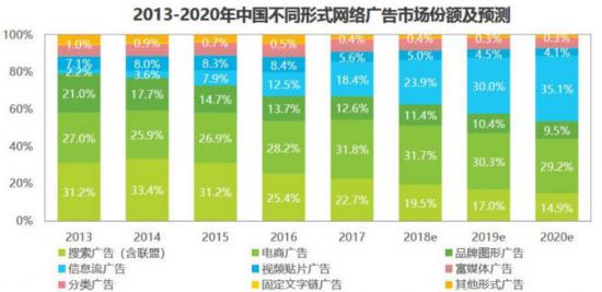 从而,在信息海洋里,抓取不到优质信息量的搜索引擎,已经能摸到自己的天花板了。根据中商情报网数据,市场份额不断下跌的搜索引擎,到2020年,预计会被电商、信息流平台等蚕食到腰斩。