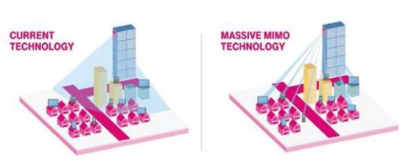 像传统TDD网络天线数量基本是2,4,8,而Massive MIMO的通道数高达64/128/256个,因而Massive MIMO拥有更多的信号传递路径,峰值和平均吞吐量大幅度提升,也提供了更加丰富的空间自由度,支持空分多址SDMA,是构架5G网络的基础。
