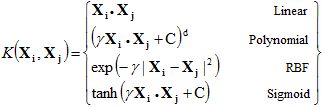 - 径向基核(radial basis function, RBF)可用于非线性可分变量。使用平方欧几里德距离,参数的典型值会导致过度拟合。sklearn中默认使用RBF。