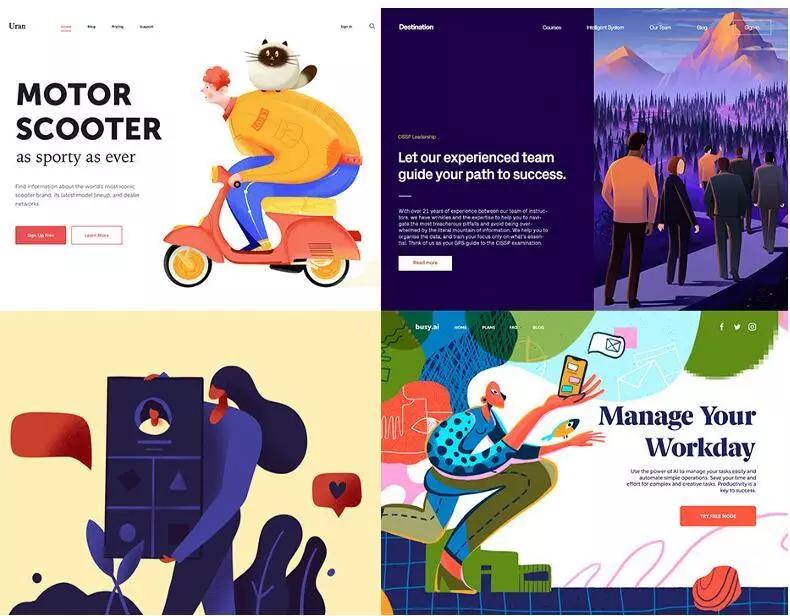 为了展示了公司品牌价值的独特性,越来越多公司使用定制化插画。这种设计方法通过使品牌体验更加个性化,帮助企业更贴近客户。毫无疑问,这个定制的插图很昂贵,但选择它们你会得到更大的收益。这么多的插画中,最受欢迎的方向是简单形状和等距形式的插画。
