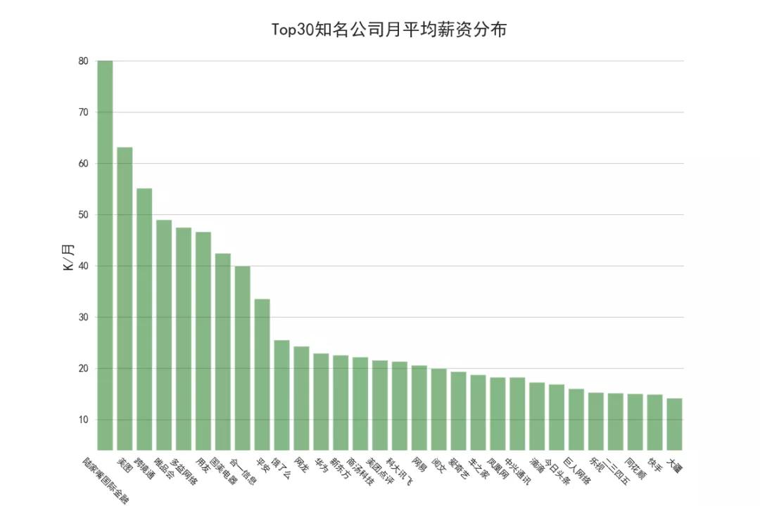 平均薪资水平排名 Top 30 的公司如上,超过 20K 的有 17 家,比过往的月份月均薪资都高。