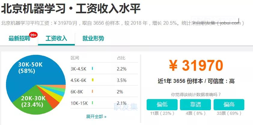 机器学习工程师现在在北京的薪资超过31000元,并且一直在持续上涨,招聘相关职位的企业也都是超级独角兽。