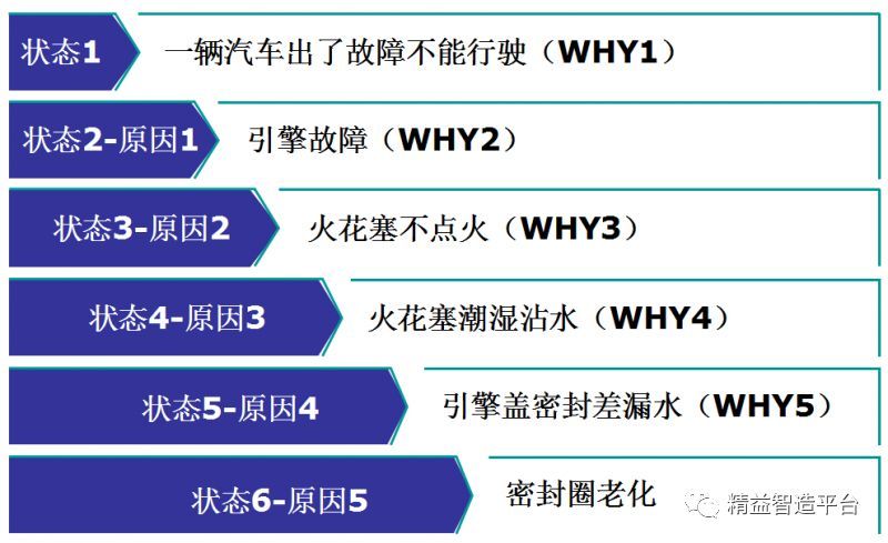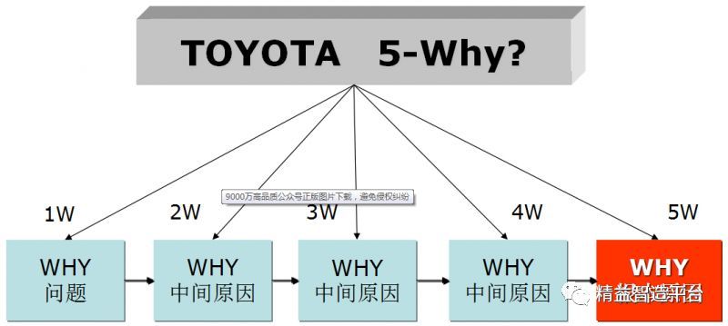 当一个原因被发现时,不停地问为什么、为什么、为什么、为什么、为什么,一直到无法拆解下去 。