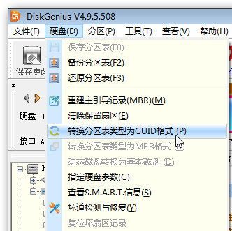 注意看此时的“转换分区表类型为MBR格式”为灰色不可选,说明目前硬盘分区格式为MBR格式,那么它在BIOS里设定的启动方式对应地为legacy support,否则就会出现invalid partition table错误。