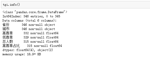 有些非常小众的城市,高客单或者低客单人数等于1甚至没有,而这些值尤其是空值会影响结果的计算,我们要提前检核数据: