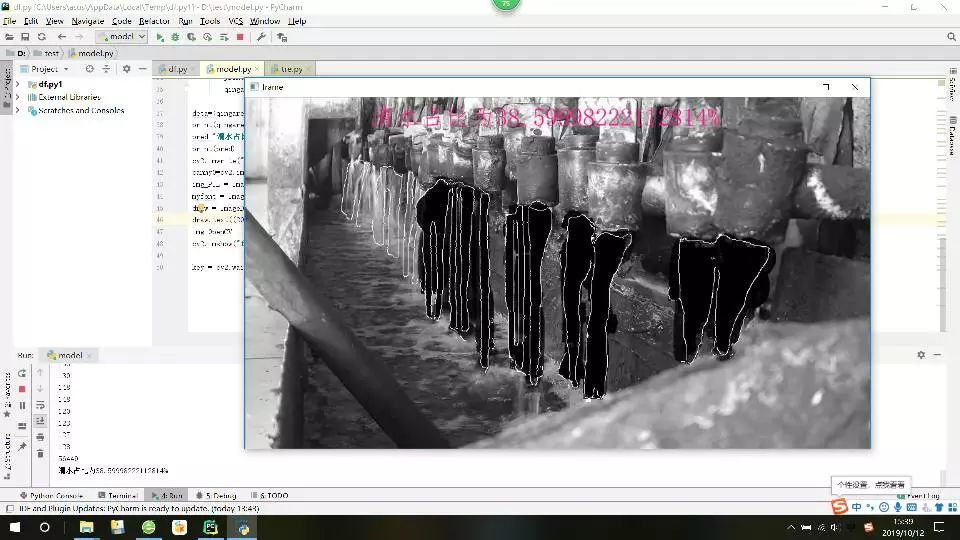 接着通过边缘检测找到水柱边界,方便查看。