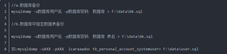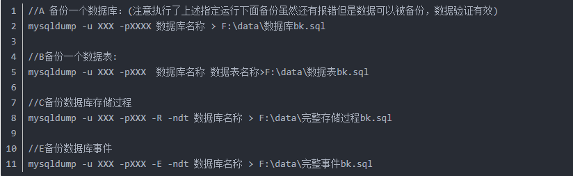 2. 使用mysqldump备份数据库(整库/数据库中指定表备份)。