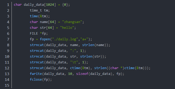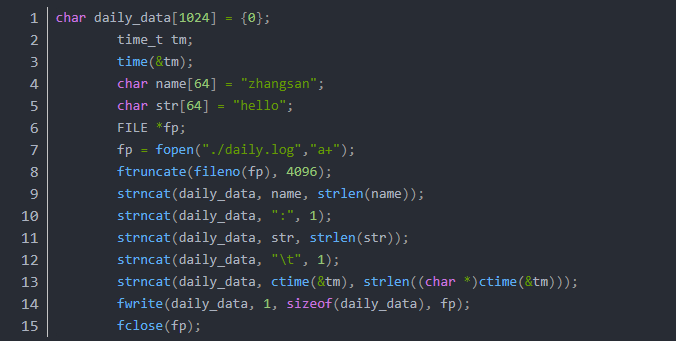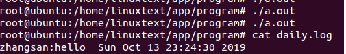 例子1:向日志文件daily.log以追加方式写入“zhangsan:hello ctime时间”。