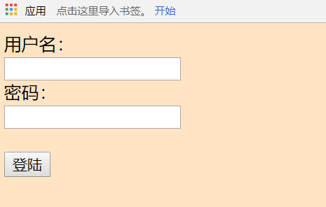 <!DOCTYPE html><html><head><meta charset="utf-8" /><title>html中form表单标签的详细介绍</title></head><body bgcolor="bisque"><form action="/1.php" method="get">用户名:<br><input type="text" name="userName"><br>密码:<br><input type="text" name="password"><br><br><input type="submit" value="登陆"></form></body></html>