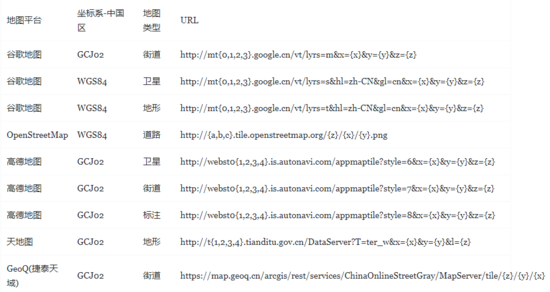 http://mt{0-3}.google.com/vt/lyrs=m&hl=zh-CN&gl=cn&x={x}&y={y}&z={z}