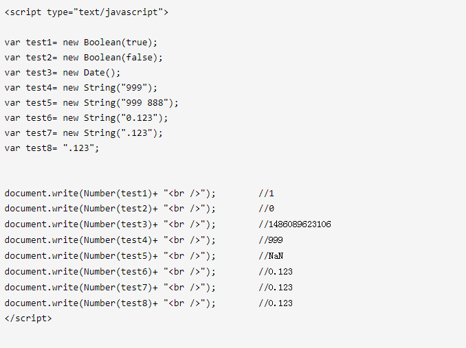 如果是字符串中只包含数字(包括前面带正号或负号的情况),则将其转换为十进制数值,即“1”变成1,“123”会变成123,而“011”会变成11(前导的零被忽略了);