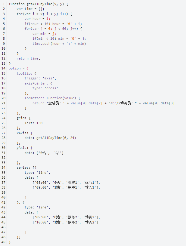 不说废话直接上代码,getAllDayTime传入0≤x≤y≤23的数,x轴可有以分钟为刻度。