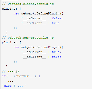 2.代码是由前后端共享,那如何分平台地操作不同代码?答:通过webpack。对共享代码,进行不同平台的,webpack(babel)编译,通过在webpack.config.js中加入