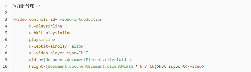 注意: 添加上部分属性后,会带来一个新的小问题:如果是单页应用,用户在video播放时,跳转了页面,video扔会播放。