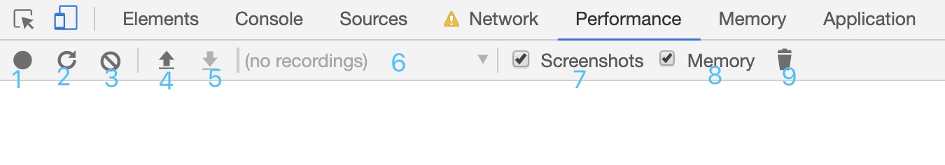 调整好之后,我们切到 Performance 面板,这里先说明一下一些按钮的作用: