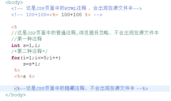 1、JSP页面中的HTML注释。注意:HTML注释内的JSP表达式将被计算和执行,并送给浏览器响应 。