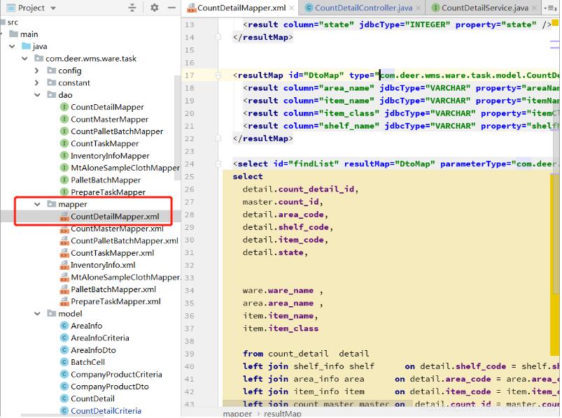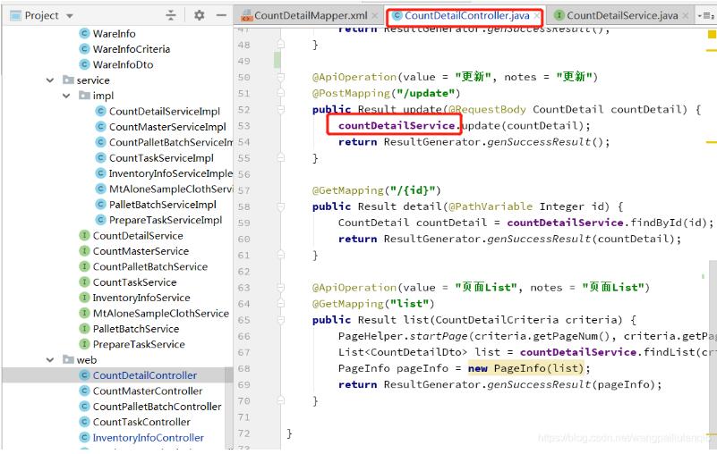 controller层-----> service层(接口—>接口实现类) -----> dao层的.mapper文件 -----> 和mapper层里的.xml文件对应