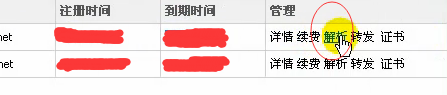 4、我们要登录注册域名的供应商网站,对域名进行管理,点击""解析“,