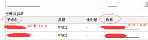 5、点击”解析“后,就会转入解析界面,在这里设置域名=IP地址,如www.baidu.com=119.75.218.45,