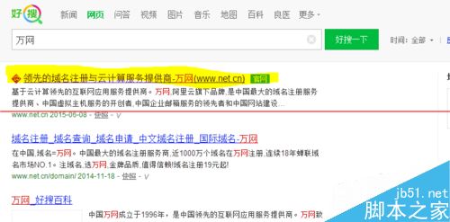 2、在搜索结果中找到万网官网进入