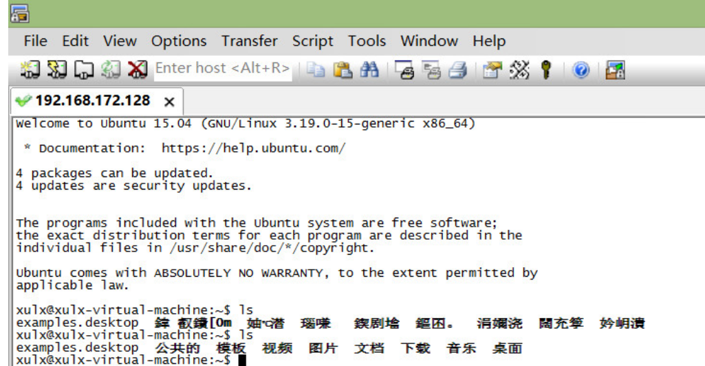 大家发现上面ls的时候,返回的数据是乱码。因为SecureCRT中文显示乱码.