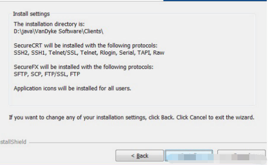 步骤6:选择安装路径(注意:这是安装了两个,一个是操作Linux系统CRT,一个是操作文件从Windows中传输到linux系统FX,安装完成,会发现桌面有两个图标)。
