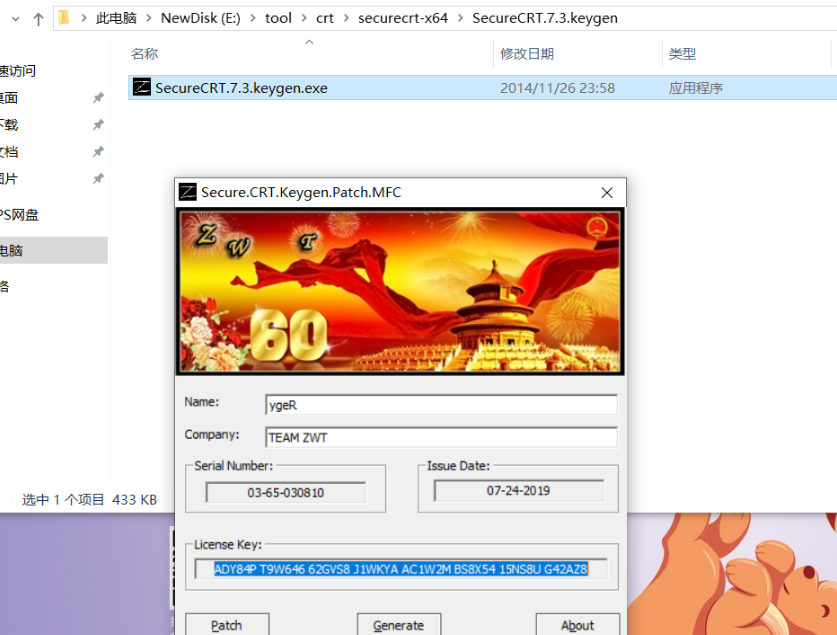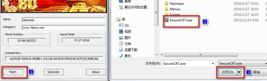 6、点击”Pctch“后弹出如下界面,选中”SecureCRT.exe“。路径为”C:\Program Files\VanDyke Software\SecureCRT\SecureCRT.exe“。
