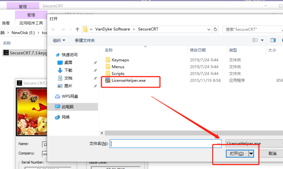7、接下来会继续弹出加载页面,选中”LicenseHelper.exe“。路径为”C:\Program Files\VanDyke Software\SecureCRT\LicenseHelper.exe“。