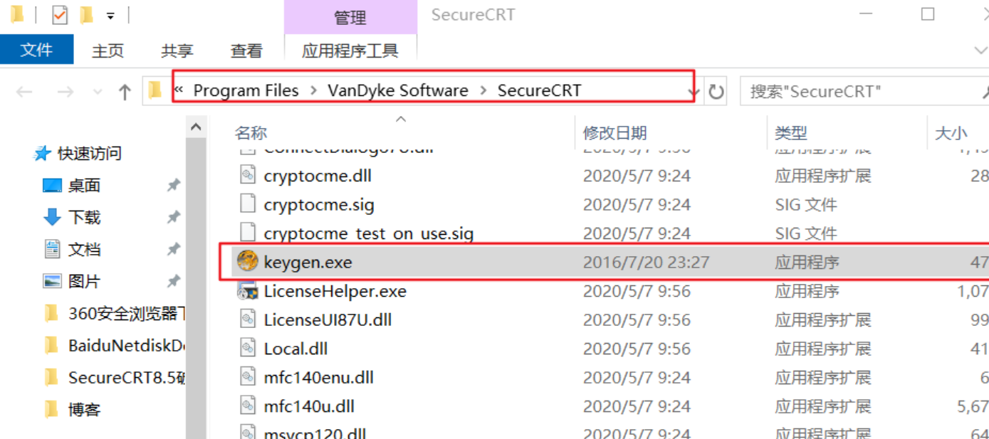 1、将keygen.exe拷贝SecureCRT安装目录下。