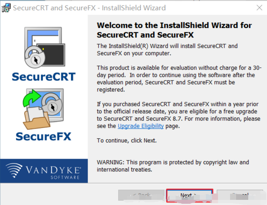 1、根据需要选择版本安装,双击scrt-x64.8.7.2.2214.exe运行,如图所示。