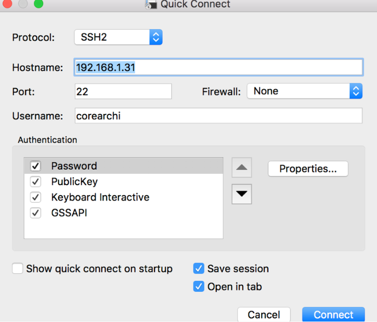 点击软件左上角的Connect,选中Quick Connect:输入ip和用户名和密码。即可远程连接服务器。