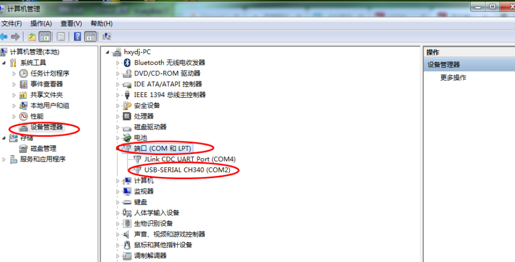 然后选择左侧的设备管理器,在右边点开端口(COM和LPT)前面的三角符号,就可以看到所使用的串口。