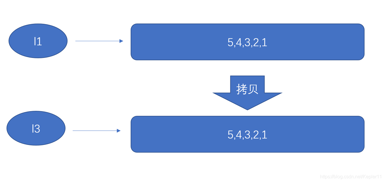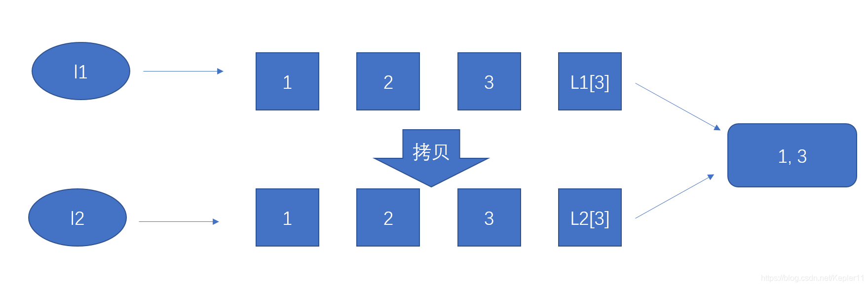 通俗的来讲,像l2这种,拷贝出来的对象和原对象的地址相同,为浅复制,像l3这种,分配新的内存空间并拷贝原始内容的,拷贝出来的对象和原对象的地址不同,为深复制。