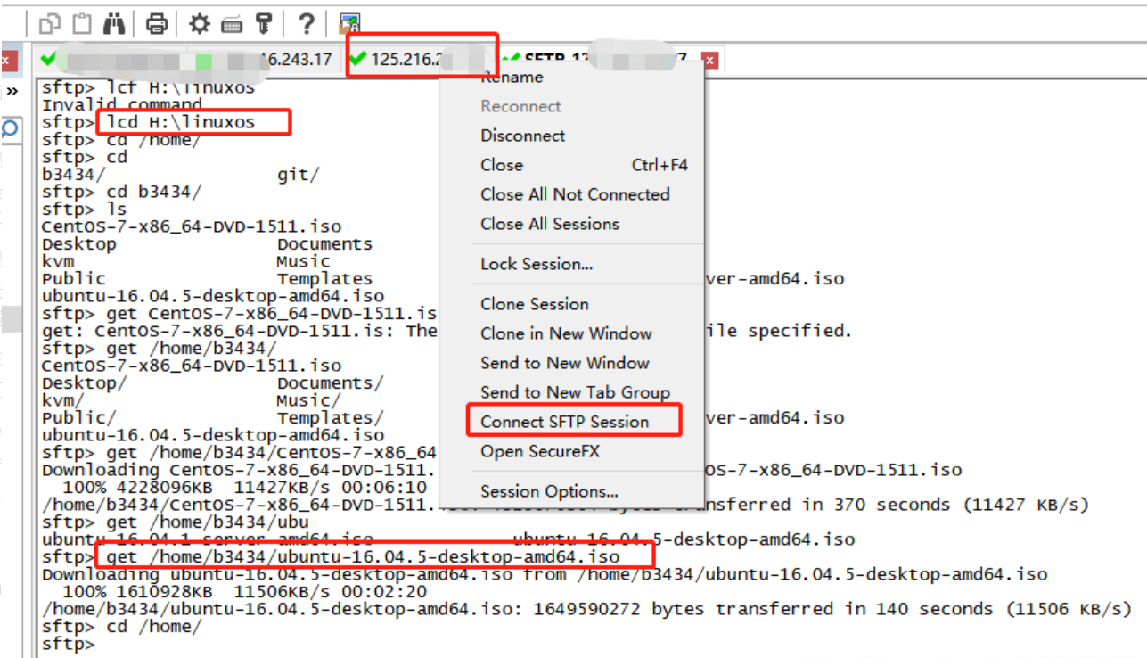 1. 在服务器窗口上右键,选择Connect SFTP Session,出现右边的SFTP连接