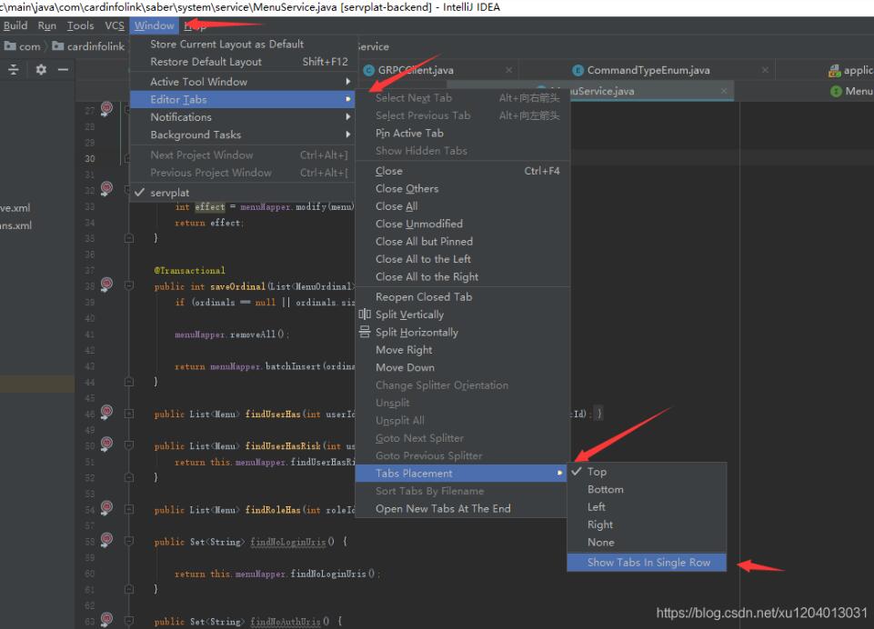 在使用IDEA写代码的时候,打开tabs都挤在一行,当打开页面过多的时候,前面的页面无法直观看到,非常不方便。通过简单设置就可以实现tabs多行显示。