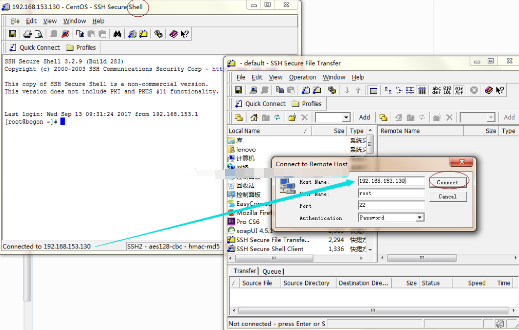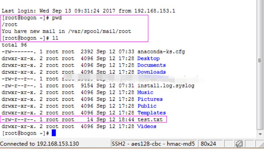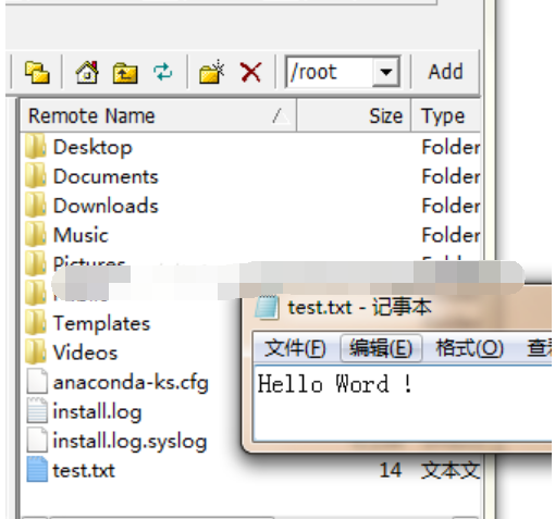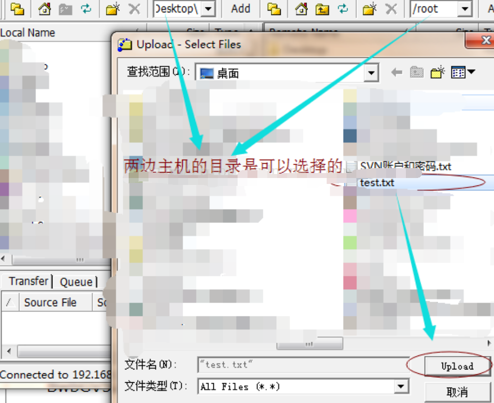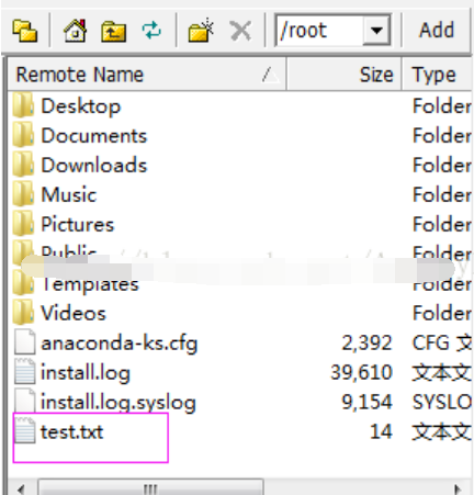 两种方式,最终把test.txt上传到了CentOS下的\root文件夹下:
