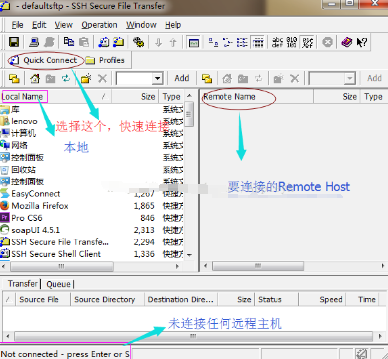 首先打开桌面上的SSH File Transfer工具,打开后,我们暂时未连接远程主机。