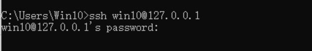 最后一步,测试一下是否OpenSSH Server已经打开, 打开命令行 输入 用户名(电脑的用户名)@ip(本机的ip地址),再输入密码就可以看到连接成功了。