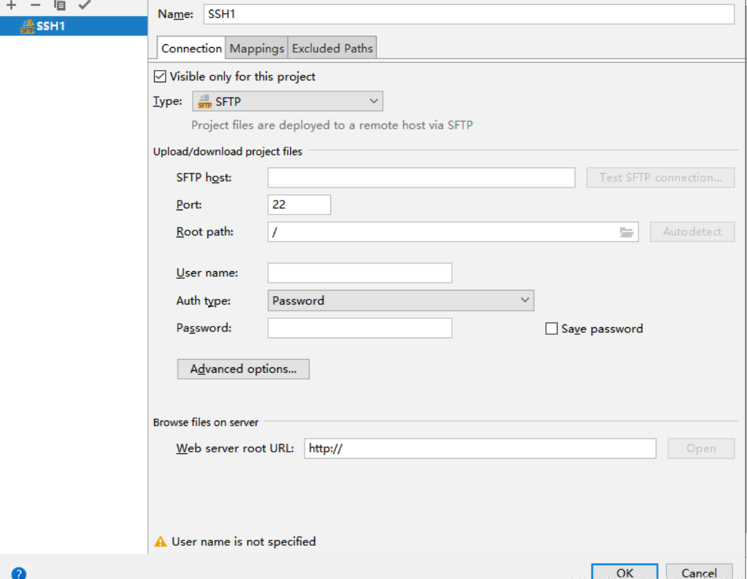 5.然后开始输入host、port、name和密码,点击 Test SFTP connection测试连接