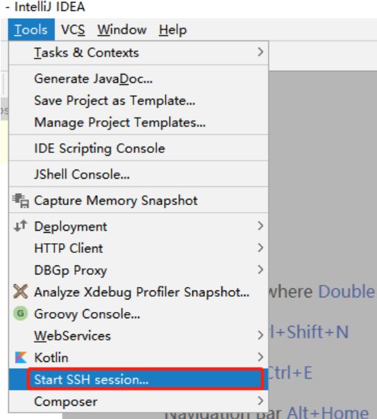 7.以后点击Tools => Start SSH Session => 选择SSH1即可连接至SSH1