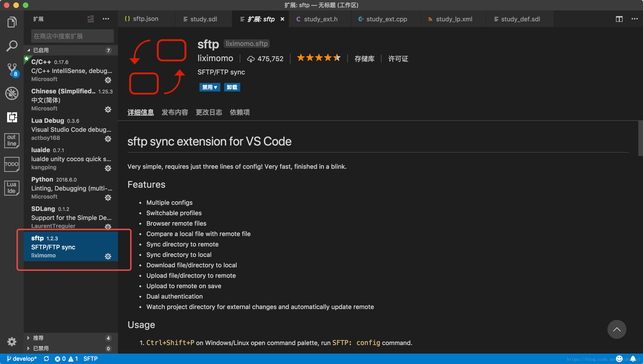 2、下载sftp插件并安装