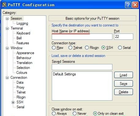 1、在Putty“Host Name”输入IP地址,点击“Open”进行连接。