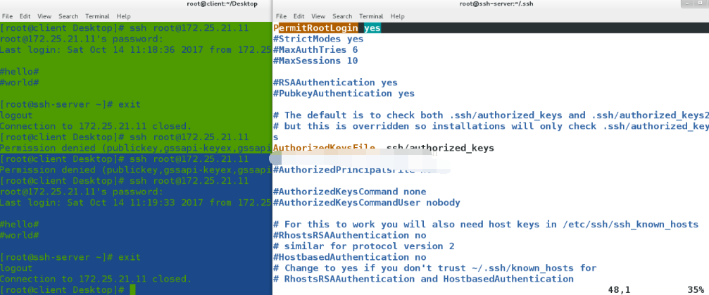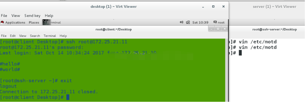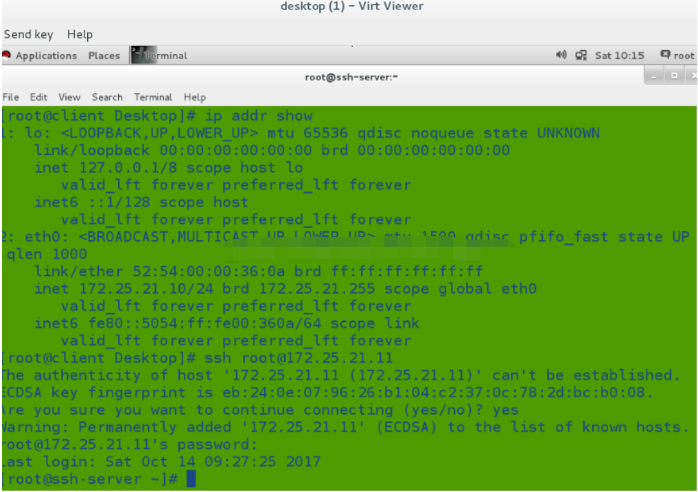 ssh root@172.25.0.10 ##在客户端用ssh命令连接172.25.0.10主机的root用户