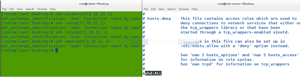 sshd:ALL EXCEPT 172.25.254.200 ##只不允许200链接sshd
