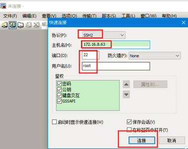 (1)协议选择SSH2;